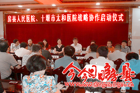 今日房县网讯 记者陈绍杰通讯员裴中东报道: 为规范和改进医院管理和医疗质量,12日,县人民医院与十堰市太和医院战略协作正式启动。县委常委、宣传部部长徐锦凤,副县长林华,太和医院专家团队及县人民医院干部职工参加协作启动仪式。此次战略协作通过选派县人民医院中层干部赴太和医院挂职培训和重点科室建设帮扶工作;请太和医院专家定期与不定期来县人民医院查房、会诊、义诊和培训等方式,以“走出去和请进来”的办法,使县人民医院在技术水平、管理水平和服务质量上能得到较大提升,更好地服务我县经济社会发展和人民群众身体健康。