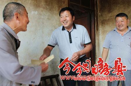 县政府党组成员、县纪委副书记、监察局局长张光斌代表县纪委向贫困户送去慰问金