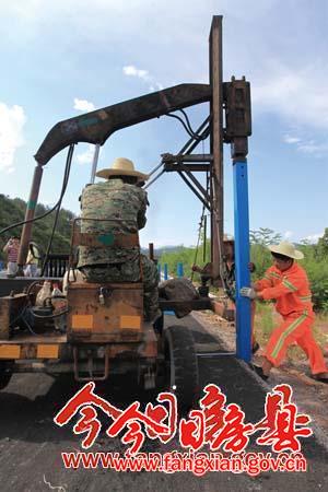 “十房”高速公路起点位于丹江口市六里坪镇,终点在房县城关镇莲花村,同谷竹高速公路交汇互通,主线全长66.933公里,其中,房县城内34.465公里,2009年11月开工以来,路基开挖、路面铺设工程基本完工,除部分路段外,工程已进入绿化带建设及安全防护设施安装阶段。记者14日从城关镇莲花村驱车行驶“十房”高速,直达土城镇通省隧道。沿途记者看到,虽然室外温度高达35度,但施工人员仍坚守岗位,加紧施工。据“十房”高速公路建设协调指挥部工作人员闫毅介绍,按目前进度,通省隧道如果施工顺利,今年“十房”高速可全线贯通。
