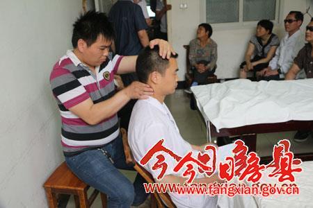 县残联积极推进盲残人群就业,根据盲残人群自身特点,多次开展康复按摩培训班,对有劳动能力,且热爱康复工作的盲残人员进行免费培训,目前已有20多名盲残人员通过学习或自己开店挣钱,或在康复机构打工挣钱,实现了自食其力。图为盲残人员在县永康康复医院免费接受技能培训。(李宇 摄)