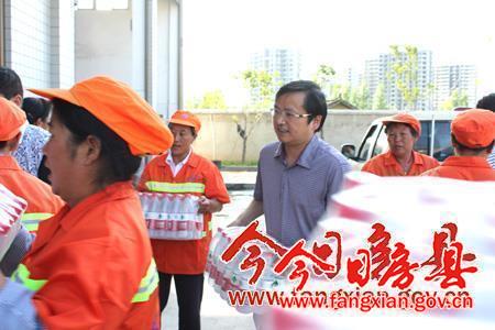 今日房县网讯 记者 高书文 通讯员 何婷 报道: 连日高温,酷暑难耐。22日,县委常委、常务副县长王家波,县委常委、县委办主任张永平前往东城工业园区环卫所,看望慰问烈日下坚守岗位的环卫工人们,并向他们送上防暑降温物品和慰问金。