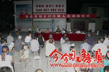 今日房县网讯 记者毛俊杰 通讯员李娟 报道:为纵深推进我县美丽乡村建设,22日,县文明办、化龙堰镇党委政府联合文明单位镇财政所选定该镇古城村为试点开展美丽乡村内修人文活动。当日晚8时许,美丽乡村内修人文启动仪式在古城小区广场成功举行。古城村村两委、全体党员、村民代表等100余人参加了启动仪式。