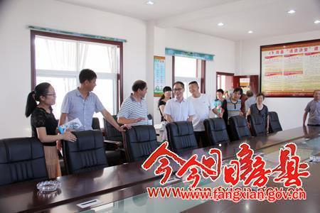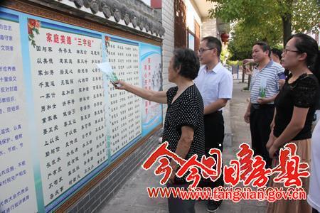 图为参加仪式人员在活动前一同参观古城村道德讲堂建设