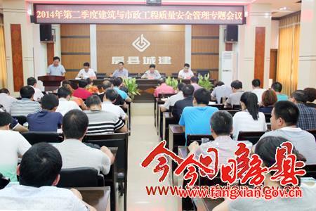 今日房县网讯 记者毛俊杰 实习生付培文 刘鑫波 报道:为认真贯彻全市建筑与市政工程质量安全管理会议精神和有关加强建设工程质量管理工作的部署要求,7月23日,县住建局召开了2014年全县第二季度建筑与市政工程质量安全管理工作会议。局领导班子成员和质安站、监理所全体人员等80多人参加了会议。
