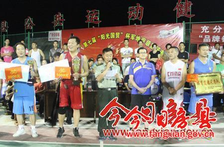 本次比赛由军队2只代表队和县里5只代表队参赛,经过4场表演赛,21场正式比赛,县政府战线代表队获得冠军,奖金5000元;县政法战线组织的蓝盾代表队获得亚军,奖金2000元;某驻军部队获得道德风尚奖,奖金1000元。