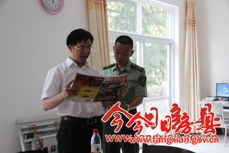 图为县领导张慧彬、王启云在县人武部同官兵一一握手
