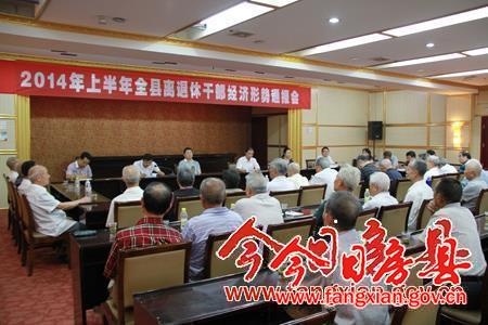 县委常委、常务副县长王家波向老干部通报上半年经济社会发展情况