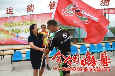 今日房县网讯 记者 赵爱平 高书文 通讯员 张华田 李丽 报道: 8日,时值全国第6个全民健身日,“湖北房县野人车队”正式成立,并举办首次环城骑行活动。县委常委、宣传部部长徐锦凤宣布骑行活动开始,副县长林华为车队授旗,县政协副主席王学能出席成立仪式。