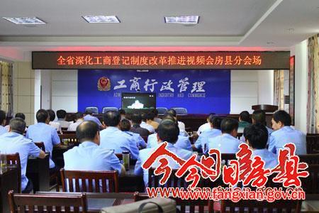 今日房县网讯 记者 高书文 报道: 29日,全省深化工商登记制度改革推进视频会议召开,县工商局、编办、发改局等相关单位在房县分会场收看了会议实况。