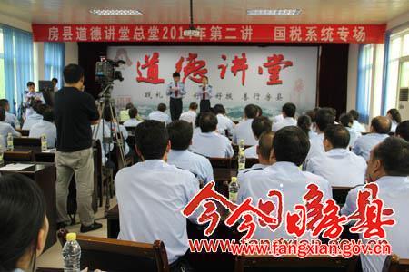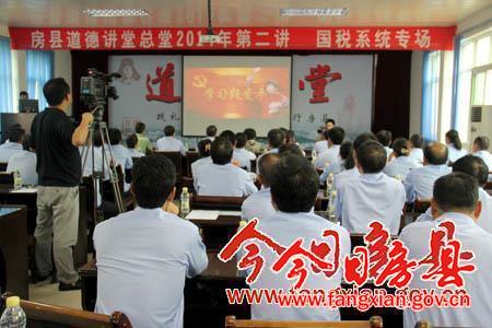 今日房县网讯 记者陈绍杰报道: 5日,县国税局开展以“敬业奉献”为主题的道德讲堂活动。国税系统全体干部职工参加讲堂。
