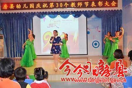 今日房县网讯 通讯员李绪鸿 报道: 为庆祝第三十个教师节,弘扬广大教职工敬业乐教、无私奉献的高尚情操,近日,县幼儿园举行了庆祝教师节表彰暨庆祝大会。