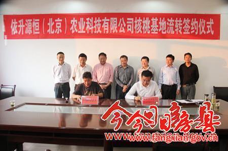 今日房县网讯 记者陈绍杰 通讯员李雪丽报道: 24日,白鹤镇与依升源恒(北京)农业科技有限公司就核桃基地流转签订合作协议。县委常委、副县长高明哲,县政协副主席张延贵,县政府党组成员李相明出席签约仪式。