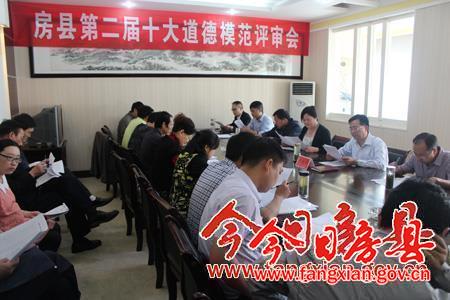 今日房县网讯 记者王玮 报道:25日,我县召开第二届十大道德模范评委审定会,初步评审出高明平、付斌、赵大满、王家双等10名道德模范。县委副书记张慧彬,县委常委、宣传部部长徐锦凤,县政府党组成员张光斌出席评审会。