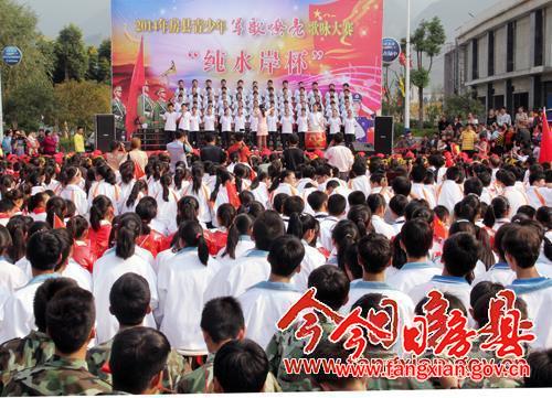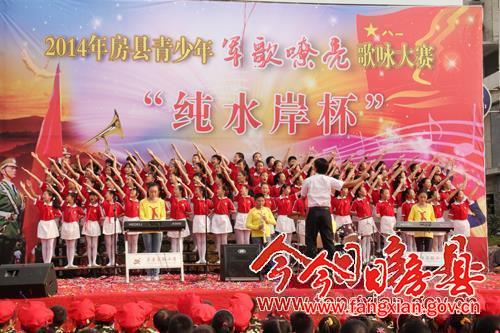 今日房县网讯 记者毛俊杰 通讯员昝斌 报道:为庆祝建国65周年、弘扬爱国主义精神、强化国防教育,25日下午,我县在温泉纯水岸举行青少年军歌嘹亮歌咏大赛。来自各中小学的11支合唱队放声高歌,精彩的表演吸引上千市民驻足观看。