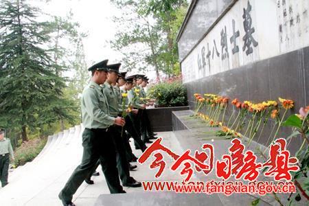 随后,30名少先队员献唱中国少年先锋队队歌,12名武警官兵迈着整齐的步伐分别代表县委、人大、政府、政协、驻房部队官兵、青少年学生向革命先烈敬献花圈。柯大成、王启云、陆毅、王家波缓缓走上纪念碑前,仔细整理挽联,然后全体人员集体向为房县革命发展事业英勇献身的先烈们三鞠躬。