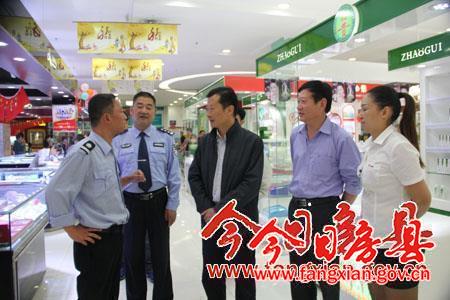 今日房县网讯 记者 高书文 报道: 为确保国庆长假期间的安全生产和社会稳定,国庆小长假首日,县委常委、纪委书记姚天国,副县长、公安局长柯正洪在野保、旅游等部门负责人的陪同下,对我县部分超市、各大景区和县汽车站进行了突击安全检查。