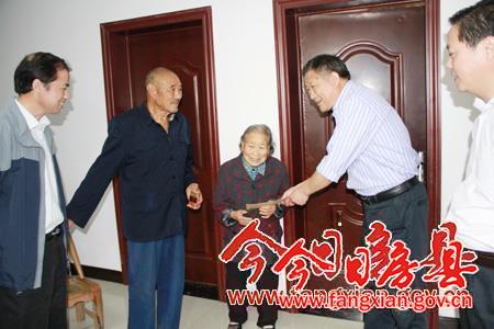 今日房县网讯 记者 吴宏强 刘臣 通讯员 代娟 报道:29日,重阳节即将到来之际,县委书记柯大成、县长蔡贤忠分别来到县福利院、县光荣院看望慰问在院老人,代表县委、县政府向老年人们致以节日的问候和良好的祝愿。县领导张慧彬、王启云、陆毅、丁宪章、田文东、张延贵参加慰问活动。