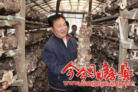 沙河乡为全省食用菌优秀基地乡镇,该乡生产的小花菇具有肉厚、柄短、色鲜、花纹明显、含水量低、保鲜期长等质量优势。近年来,该乡食用菌产业取得飞快发展,全乡45%以上的农户参与发展食用菌,年从事食用菌生产、加工、销售人员在5000人以上,有专业合作社3家,龙头企业2个,产业示范园2个,全乡12个村共发展袋料食用菌325万袋,产量达3250吨,产值达到3250万元,成为当地农民增收致富的“金饭碗”。图为县蔬菜办工作人员正在查看五塘村专业户高德成的秋菇长势。(田华锐 摄)