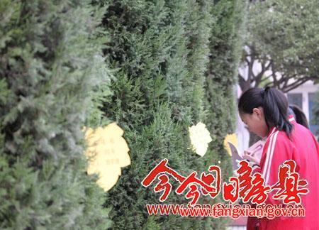 近日,县实验小学为校内20多棵胸径达15厘米以上的石榴树、雪松等树木订制了“身份证”,上面标注树名、树龄及管护责任学生姓名,进一步增强学生绿色环保意识。图为县实验小学学生正在制作树木“身份证”。 (林鹏 摄)