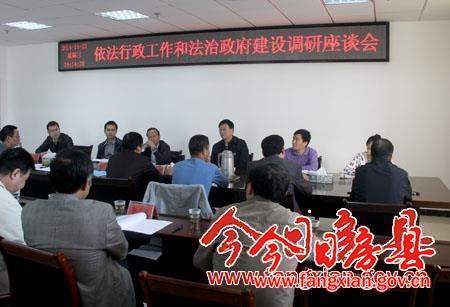 十八大以来,我县加大依法行政力度,转变政府职能努力打造服务型政府,完善制度建设,真正实现民主决策;拓宽监督渠道,强化行政执法救济;坚持宣传培训,不断提高学法用法能力,加大法制政府建设步伐,成效明显。调研中,张绍明一行与县直部分单位负责人就依法行政工作和法制政府建设展开了座谈。张绍明对今年以来我县经济社会发展成绩给予充分肯定。他指出,在推进经济社会发展的同时,要注重运用法治思维、法制方式来推进依法治县。张绍明希望房县上下要提振精神,奋发有为,推进改革发展和法治政府建设,省法制办将与市县法制办加强联系沟通,通力合作,深化为基层办实事活动。