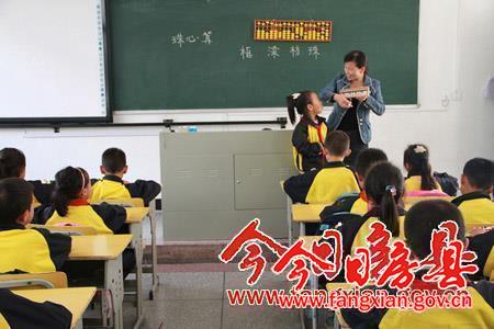 今日房县网讯 通讯员李英报道:30日上午,东城小学二(3)班教室里,数学老师刘丽正拿着算盘,专心致志的教着孩子们珠算儿歌“加看框株减看梁,直加直减不思量……”。“珠心算”这门课程已悄然走进该校课堂。