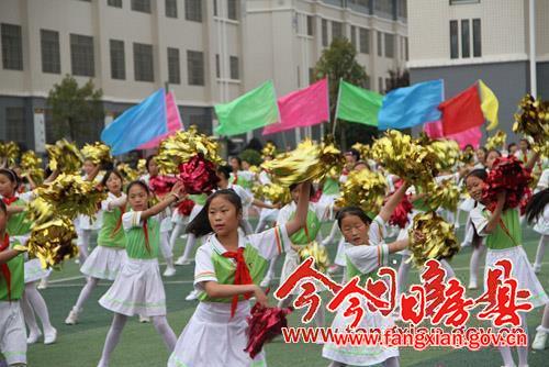 东城小学塑胶操场上彩旗招展,队旗飘飘,锣鼓喧天,鲜花招展,全校3000余名师生沉浸在一片欢乐的海洋之中。