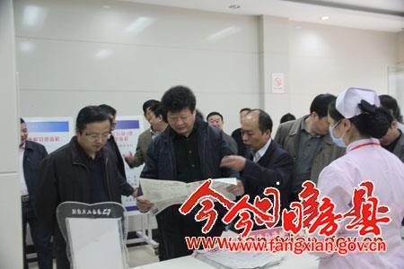 省卫计委副巡视员高忠明,县委常委、常务副县长王家波在县人民医院查看县级公立医院综合改革宣传情况