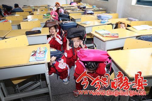 按照演练方案,本次演练分两部分进行:一是教室内应急避震演练;二是紧急疏散演练。