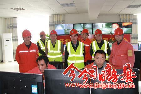 县委书记柯大成一行在华新水泥中控室了解企业生产运行情况