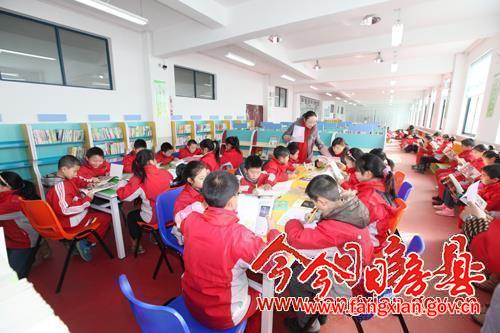 为了增加学生的阅读量,使图书室发挥其应有的作用,该校从2014年暑期开始规划建设一个集图书阅览为一体的图书阅览室。经过近5个月的紧锣密鼓的筹建,12月份,一个环境清新、静雅、舒适、温馨,让人赏心悦目图书阅览室正式建成。新建成的图书阅览室耗资60多万元,占地面积为323.5平方米,内存图书30000多册,同时能容纳200余人进行阅读,它是目前房县建成的面积最大、最具特色的图书阅览室。其门用高级毛玻璃做成,站在门外便可一览里面的情况,门上及墙壁四周装有共8个监控器,无需专门的人员看管,也能知道师生们的阅读情况,更不会出现图书被顺手带走的现象,因为每本书里都有防盗磁条,且门上装有自动报警器,室内的所有不是你的物品均带不走。墙壁四周还装有8个小音箱,配有音响设施,布置有专门的阅览桌,每个阅览桌配有20把阅览椅子,地面有的地方铺着积木垫,有的地方铺有地毯,墙壁四周间或挂有充满童真童趣的布娃娃、中国结等装饰品,一排排书架上整齐地摆放着各类读物:文学小说、名人传记、寓言童话故事、百科丛书等,极大地满足了师生阅读的需求,让师生们徜徉在书的海洋中汲取丰富的知识,学生们可以自己最喜爱的方式或站或卧或坐,听着轻音乐来愉快阅读。