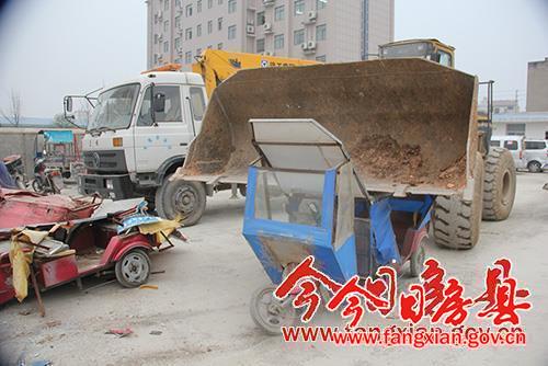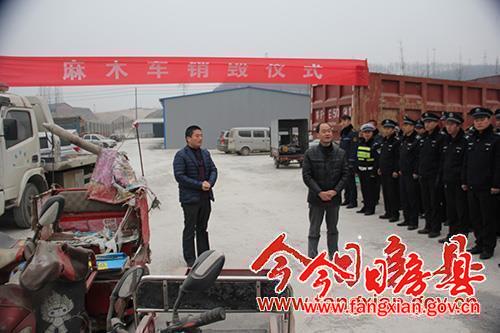今日房县网讯 记者 陈锐 报道: 12月26日,房县县政府办组织由房县交通、公安局、城管局、质监局、残联、运管局组成的整治专班,对房县城区麻木车、残疾人车非法营运行为进行集中整治,并集中销毁“麻木车”12辆。当日上午,整治专班还查扣“麻木车”13辆,取得了立竿见影的效果。