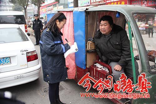 图为工作人员正在登记查扣车辆信息