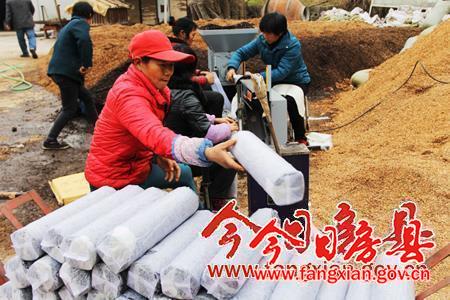 今日房县网讯 通讯员 刘中华 报道: 元月5日,房县尹吉甫镇双湾村袋料食用菌生产基地内一片忙碌景像,工人正在将粉碎好的菌料用装袋机进行填装。通过高温杀菌、接种、堆放、上架等环节,香菇在来年夏季便可进行采摘。为了克服技术和市场瓶颈,尹吉甫镇联合十堰市富强食用菌专业合作社在各村成立分社,采取“公司+基地+合作社+农户”的模式,引导和带动农户发展袋料食用菌产业,为农户最大限度规避市场和技术上的风险,激发农户发展产业的热情。今冬明春,该镇将带动30多户农户发展袋料食用菌40多万袋。