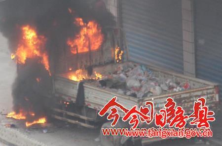 记者赶到事故现场时,驾驶室内的火焰不断往外窜,黑烟滚滚足有数十米高,周围弥漫着一股刺鼻的焦糊味。车辆停放位于一栋居民楼下,离居民楼和输电线路较近,可能引起其它次生火灾,此时周围聚集了大量的围观群众,火势若得不到控制,很有可能蔓延至油箱,引发爆炸,后果不堪设想。火灾还殃及停靠在该车辆旁边的一辆摩托车,摩托车车座和仪表盘已全部烧焦。
