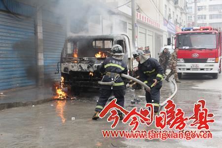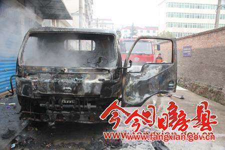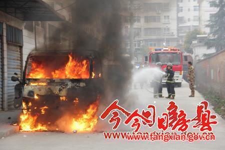 今日房县网讯 记者王玮 陈锐 报道:13日上午9时许,停靠在党校小区一号楼(陵洲国际酒店至东城小学中段)的一辆东风牌小货车莫名起火,险酿大祸,消防官兵及时赶到扑灭了大火。