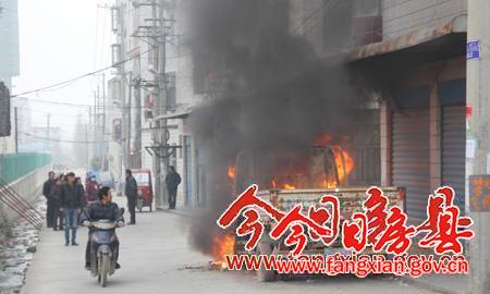 “僵尸车”起火 群众围观