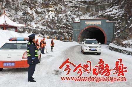 今日房县网讯 记者 吴宏强 报道: 29日14时许,记者来到209国道房县至十堰路段柳树垭隧道口,朔风凛冽,寒气逼人,站了一小会,记者已经冻的发抖,而房县公路管理局北工段的养路师傅们已经在寒风中工作了8个多小时。