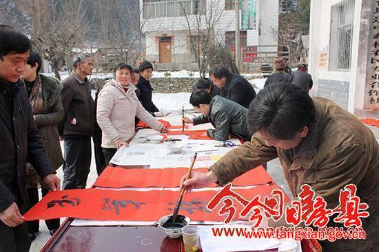 1月31日,县委宣传部、县文联组织数十名书法家到五台乡开展文艺走基层活动,为当地村民现场免费写春联,并送去春节前的祝福。