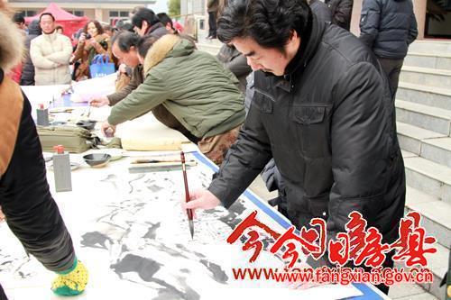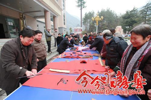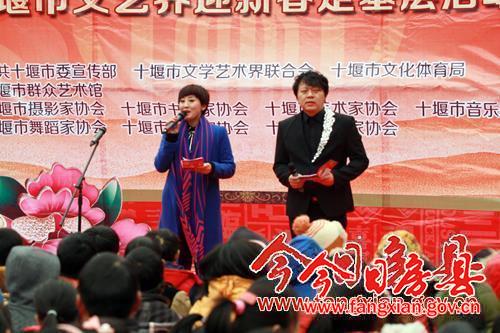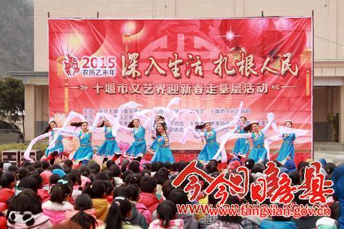 1月31日,由市委宣传部、市文学艺术联合会、市文体局主办的“深入生活,扎根人民”为主题的十堰市文艺界迎新春、走基层慰问活动在野人谷镇举行。艺术家们为群众表演了精彩的文艺节目;有书画家现场为群众题写了对联及创作了书画作品,展览了2014年度十堰市优秀摄影作品。县委常委、宣传部部长徐锦凤参加了此项活动。 (赵爱平 付长飞 摄)