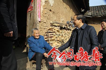 今日房县网讯 记者 吴宏强 报道: 13日,是农历腊月25,新春佳节即将到来,在五台乡红场村三组百岁老人宦金秀的自家小院里笑声阵阵,情意浓浓,带着党和政府的关怀,县长蔡贤忠专程看望慰问百岁老人宦金秀。县委常委、宣传部部长徐锦凤陪同慰问。