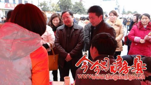 县委常委、常务副县长王家波(中)在招聘会现场了解用工单位招聘情况