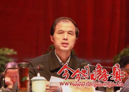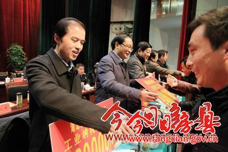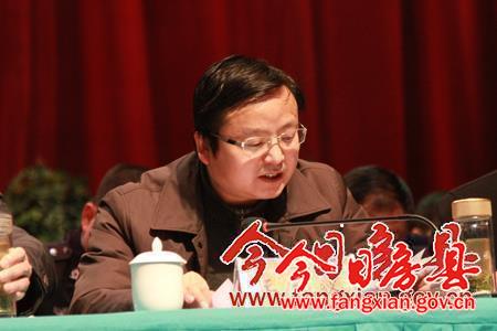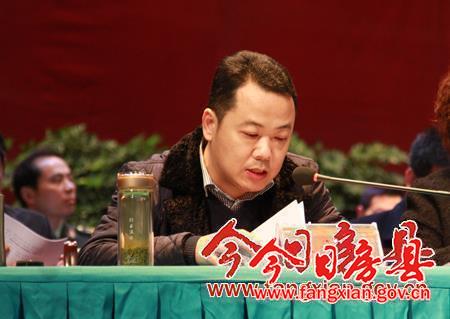 县委常委、常务副县长王家波宣读2014年度财源建设分成奖励文件