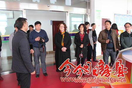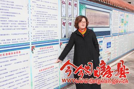 县委常委、宣传部长徐锦凤正在向林雪荣一行介绍“房县特色”的土城镇穿山堰村文明创建展示牌