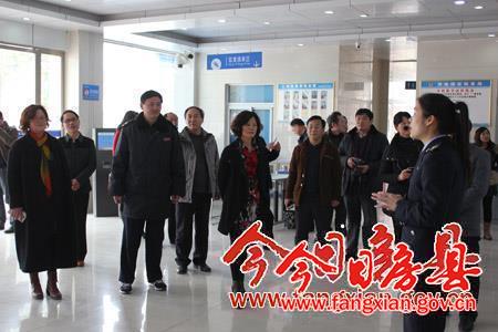 县国税局工作人员正在向林雪荣、徐锦凤一行介绍文明创建工作情况