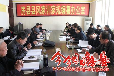 今日房县网讯 记者陈绍杰报道: 12日,我县召开县风家训家规编纂工作会,就我县县风家训家规编纂工作听取编委会成员的意见和建议。县长蔡贤忠就县风家训家规编纂工作提出指导意见,他要求要找准定位,精心编纂,力争将县风家训家规一书编纂成能教化后人,促进房县和谐发展,成为房县乃至全省道德建设的经典书籍。县委常委、宣传部部长徐锦凤主持会议。