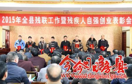 今日房县网讯 记者 吴宏强 通讯员 许旭 报道: 记者从12日召开的全县残联工作暨残疾人自强创业表彰会上获悉,付容塘、杜继强、方应相、李青松等40名残疾人自强创业户受表彰,房县喜来客门业有限责任公司荣获超比例安排残疾人就业先进单位。县委副书记张慧彬,县委常委、常务副县长王家波,县政协副主席周建国出席会议。