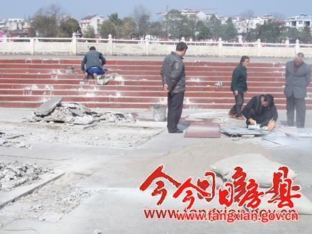 开年以来,县住建局针对城区基础设施损坏问题进行实地踏勘,研究制定维修方案。从3月9日起,组织施工队伍对西河广场破损部位进行修复,还城区广大市民一个安全、舒适的休闲场所。(郭刚 彭明瑞)