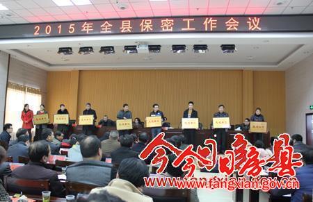 会议总结了2014年度全县保密工作,通报表彰2014年度全县保密工作先进单位和先进个人,摘要传达了保密工作责任制和网络保密管理规定等相关要求,全面安排部署全县2015年保密工作;各乡镇和县直单位签订了2015年保密工作责任书。