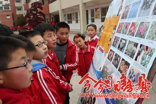 学生观看交通远离毒品宣传展板