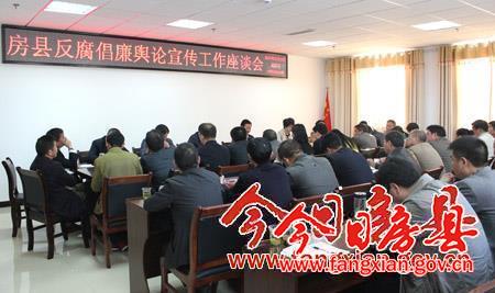 今日房县网讯 记者 高书文 报道: 29日,县纪委组织召开房县反腐倡廉舆论宣传工作座谈会。县委常委、纪委书记姚天国参加会议并讲话,县政府党组成员、纪委副书记张光斌主持会议。各乡镇纪委书记和全县主要新闻媒体负责人与会。